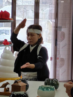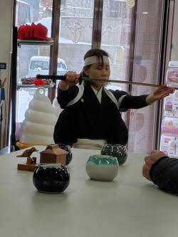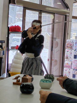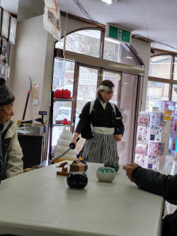 昼食場所の店の中で店員の方かと思うが白虎隊の歌に合わせて踊りを披露してくれた。